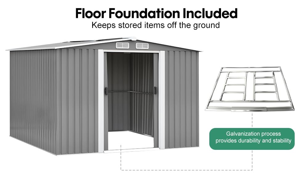 - FLOOR FOUNDATION INCLUDED: Comes with a floor foundation(not with full floor) that keeps stored items elevated off the ground, protecting them from moisture and ground dampness