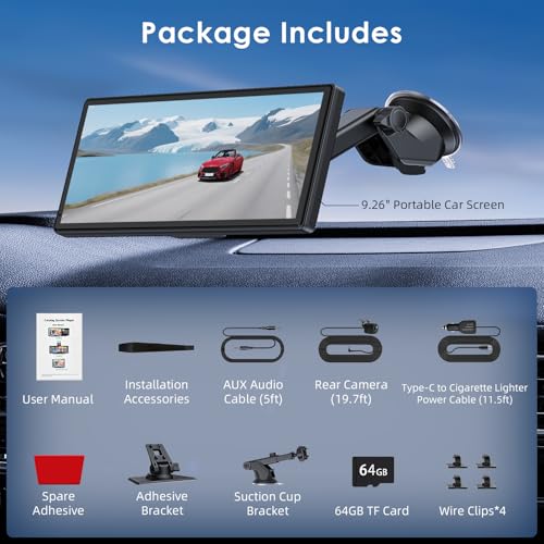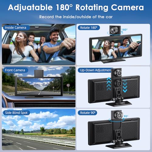 9.26 Inch Apple Car Play Screen Android Auto Screen, Car Tablet with Rotating 4K Dashcam Front and Rear Camera 1080P/FM/AUX/64G TF/Mirror Link/Voice Control/GPS Navigatio