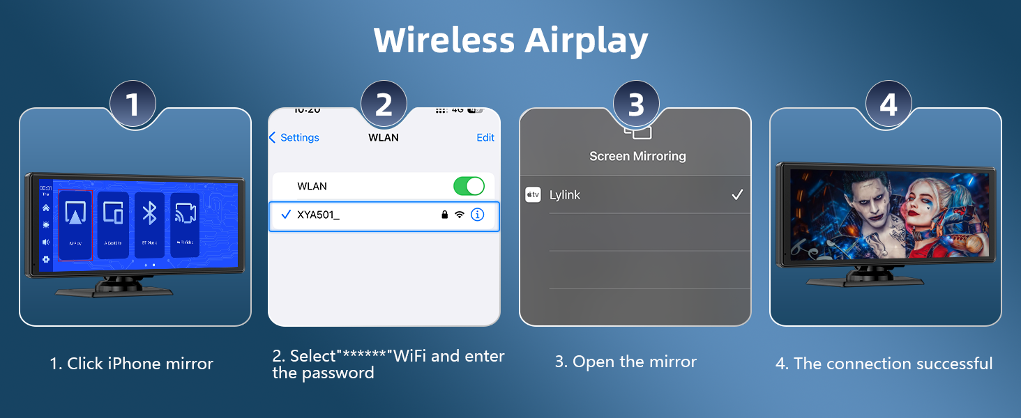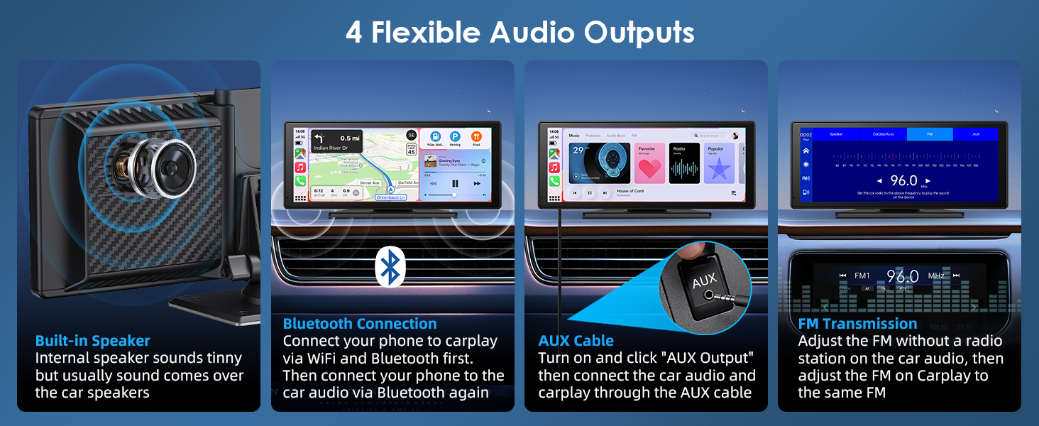 【Multi-Source Entertainment & Connectivity】 Stream music, podcasts, audiobooks, videos or movies via BT, FM radio, AUX input, Airplay, Android Cast or MirrorLink screen mirroring, transforming your car into an entertainment hub.