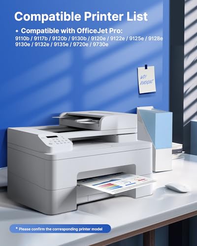 【Compatible for HP Printers】: Perfectly suited for HP OfficeJet Pro 9110b 9117b 9120b 9130b 9120e 9122e 9125e 9128e 9129e 9130e 9132e 9135e 9720e 9730e printers Attention: If your printer activated the HP+service, our ink cartridge cannot work with it.