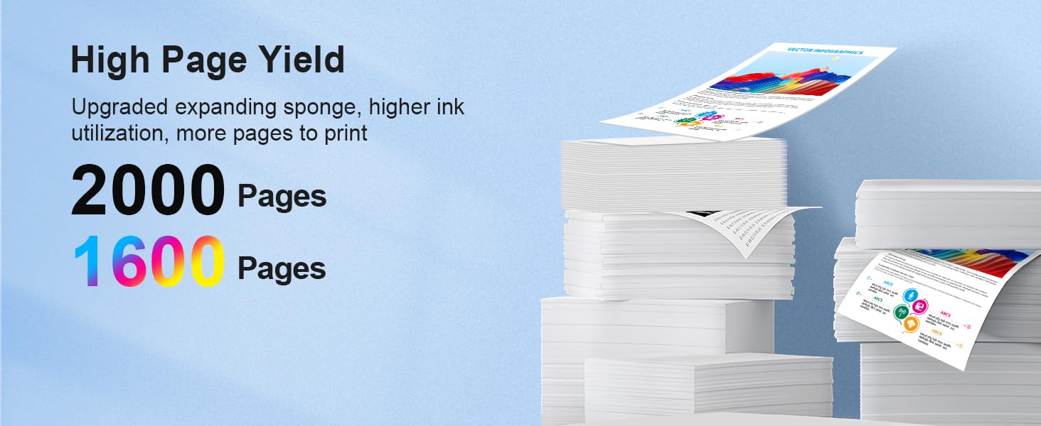 - 【High page yield】963XL ink cartridges multipack can print up to 2000 pages per 963 XL black ink cartridges, up to 1600 pages per 963 XL colour cyan magenta yellow cartridges (at 5% coverage on A4 page).