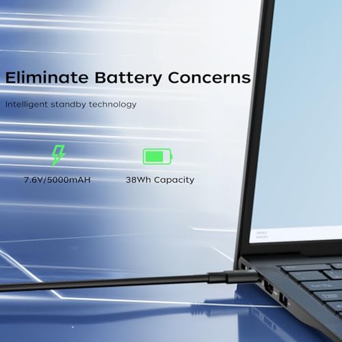 【HUMANIZED DESIGN】Tired of being tied down by wires?Tired of being tied down by wires? The laptop features a 5000mAh rechargeable battery that maximizes battery life and delivers enhanced output, making it ideal for a relaxed on-the-go lifestyle. It is equipped with an intelligent cooling fan to ensure continuous work and minimize noise, allowing you to work on spreadsheets or watch movies without distraction.The full-size ergonomic keyboard is designed for comfortable and accurate typing, while the large touchpad allows for smooth navigation, making your work and study sessions more efficient and enjoyable.