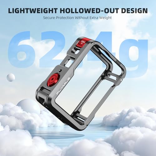 - 2.Sturdy & Lightweight: Crafted from high-quality aluminum alloy, the Action 6 Protective Cage offers excellent drop and pressure resistance. Optimized for lightness, it weighs only 63.7g (≈2.246oz) for hassle-free portability, balancing durability and convenience.