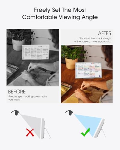 Designed specifically for Skylight 15-inch electronic calendar, this desktop stand features a thickened metal construction for durability and stability, providing an upgraded experience superior to the original stand. Its infinitely adjustable pitch allows users to freely adjust their viewing angle at different desk heights, eliminating the need to lower their head or bend over. It’s especially suitable for those who spend extended periods viewing the screen or experience cervical discomfort. The bottom of the stand is equipped with a non-slip silicone pad to ensure the device is securely placed and prevent scratching the desktop. The product requires only two screws to install, making it ideal for use in various scenarios, including home, office, and kitchen.