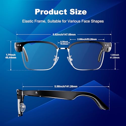 【Touch and Voice Assistant Control 】: The open-ear Bluetooth sunglasses use smart voice assistant technology. Press and hold the touch area for 2 seconds to complete answering/hanging up/playing/pausing and wake-up the voice assistant. And this Bluetooth glasses with speakers can automatically connect after the first successful pairing when the power is turned on.