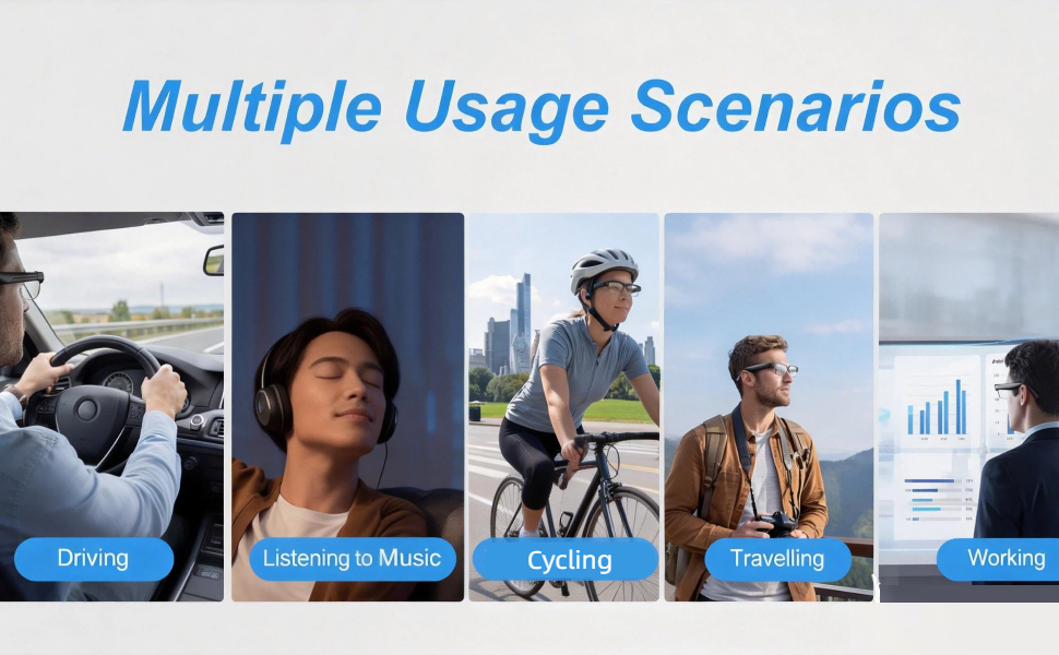 - 【Open-Back Speakers & Dual-Mic Noise Reduction】Experience immersive open-ear audio with high-fidelity, hidden open-back speakers. Using directional audio tech, they deliver rich bass, maximum volume, and ambient awareness—even in noisy or windy settings. Dual microphones reduce noise for crystal-clear calls, recordings, or AI voice commands.Stay connected and productive without extra devices.