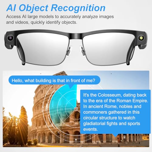 - 【 Camera & Video Recording】The smart glasses is equipped with an 8MP camera and anti-shake recording technology, these smart glasses capture clear photos and HD videos hands-free, a left-side flash lights up during shooting. With 4GB local storage, then easily imported to your phone via the dedicated app. Perfect for vlogging, outdoor adventures, or everyday memories.