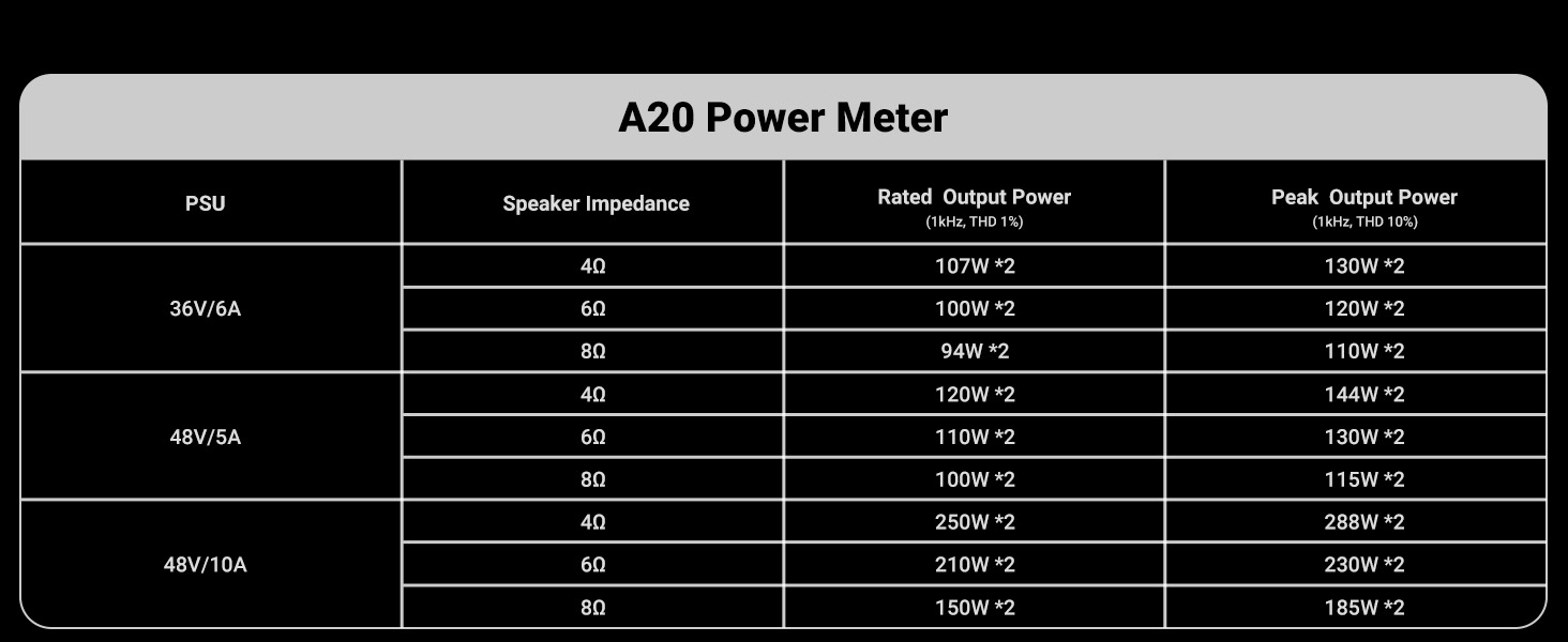 - PFFB circuit design: A20 uses PFFB (post-filter feedback) technology to effectively overcome the common load dependence problem of Class D amplifiers, improve distortion, enhance frequency response, and thus greatly improve sound quality and performance.