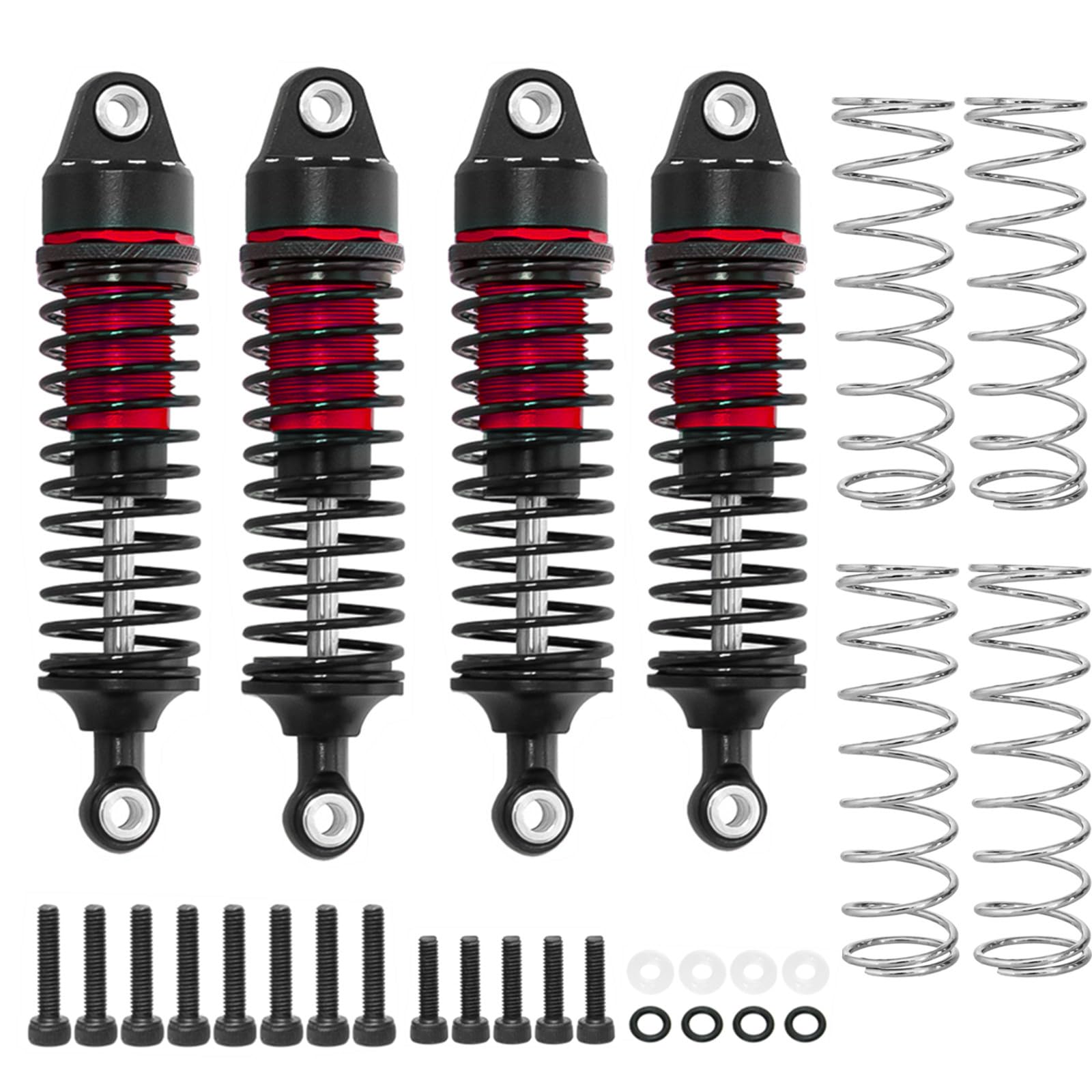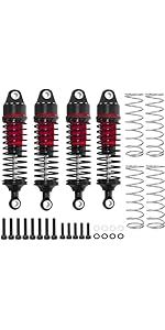 - Package Includes: 4 x RC RC Shock Absorber, 4 x Hard spring , 4 x Soft Spring , 8 x Spacer, 1 x Screw kit