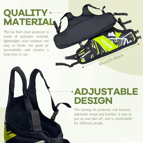 – 【Premium Material】: The Go Kart chest protector is made of polyester material, lightweight, wear resistant, not easy to break, has good air permeability and ensures a long time to use