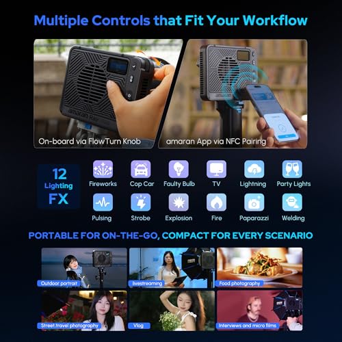 Over 22% brighter than amaran 150c at nearly 85% size reduction (Up to 6,850 lux @ 1m bare)