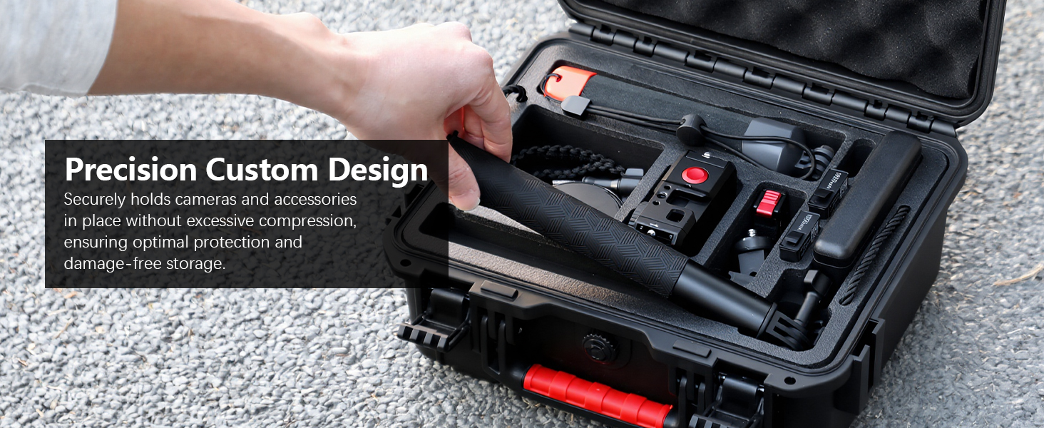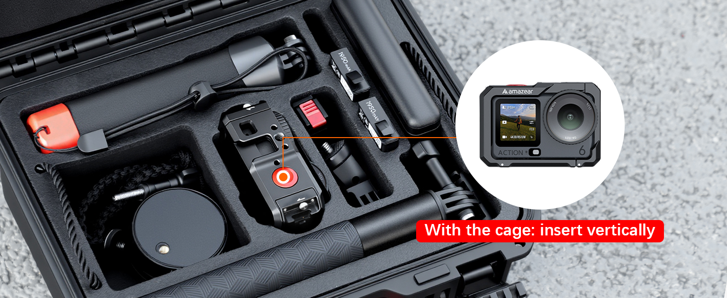 【Travel-Friendly】This hard case not only organizes full gear sets of the Action 6 but incorporates practical carrying solutions: Ergonomic handle with silicone padding and padded adjustable shoulder strap. Ensuring convenient portability for on-the-go use.