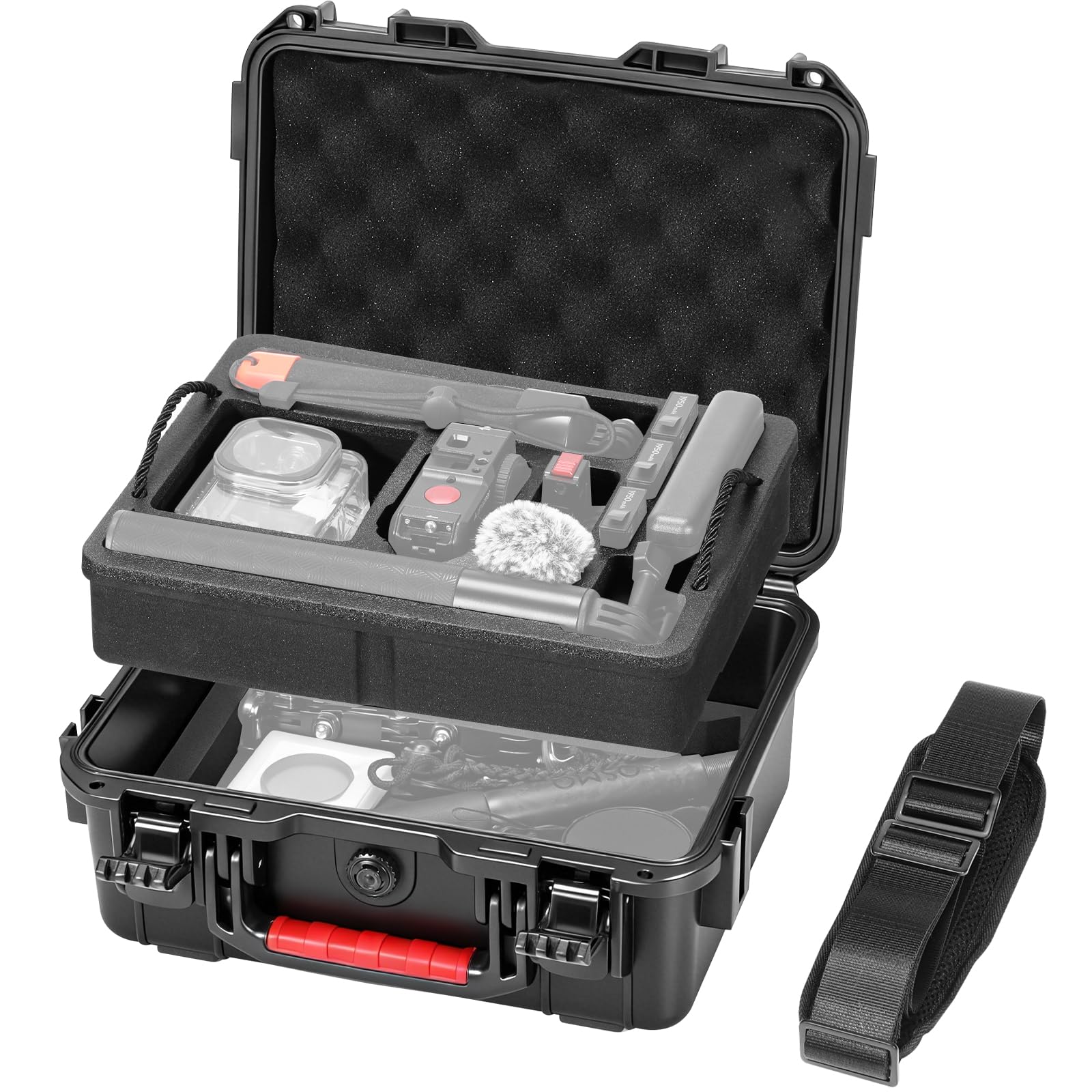 AMAZEAR Waterproof Hard Case for DJI OSMO Action 6, Action6 Pro Accessory Dual Layer Shockproof Carrying Box Hardshell Travel Case with Soft EVA Inner, Shoulder Strap Included, Black
