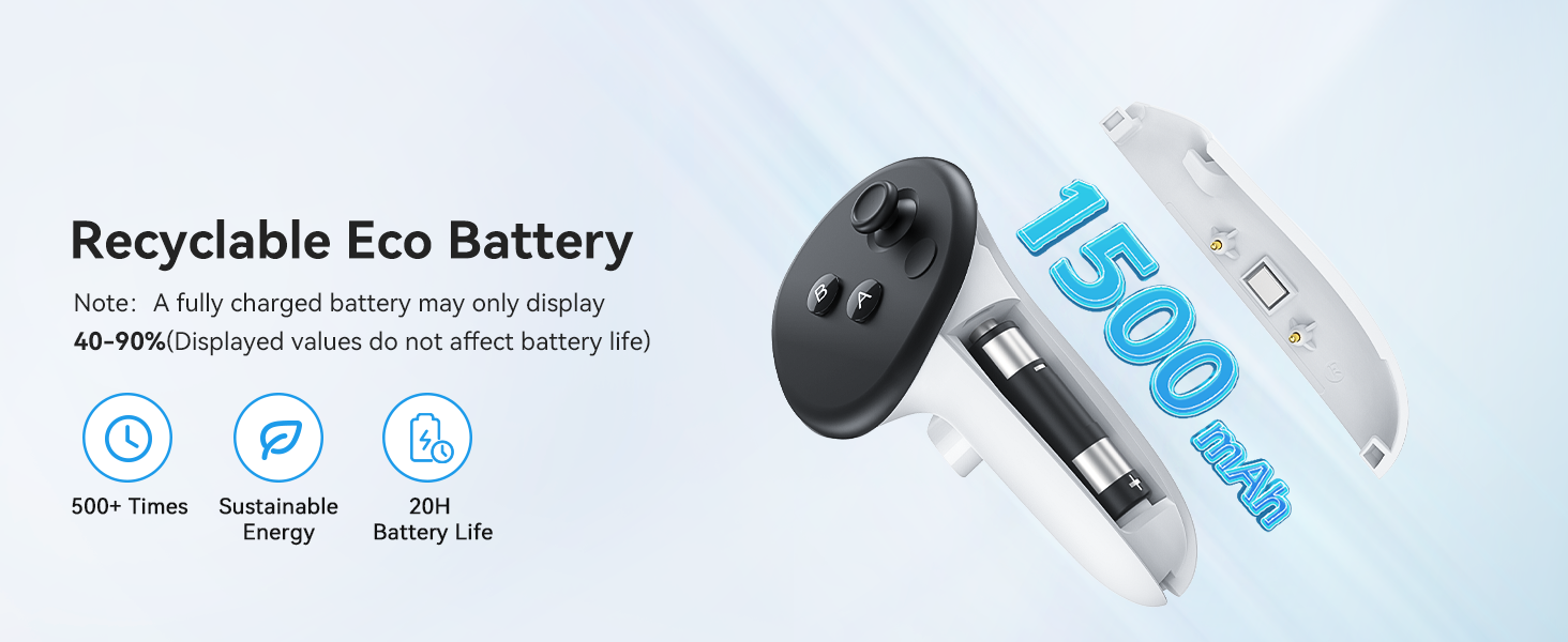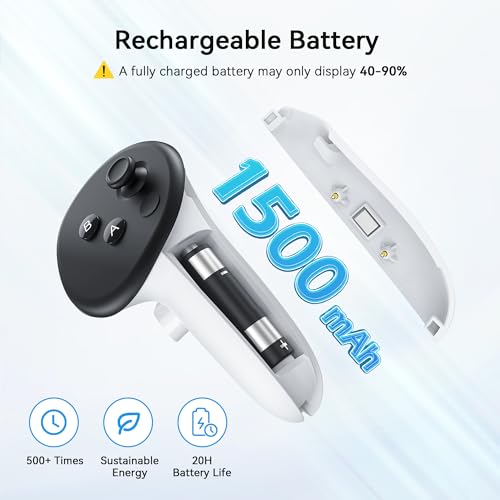 This is normal and doesn't impact the 20-hour battery life. Due to different voltage profiles of rechargeable batteries, the VR headset's charge indicator may be inaccurate with these batteries.