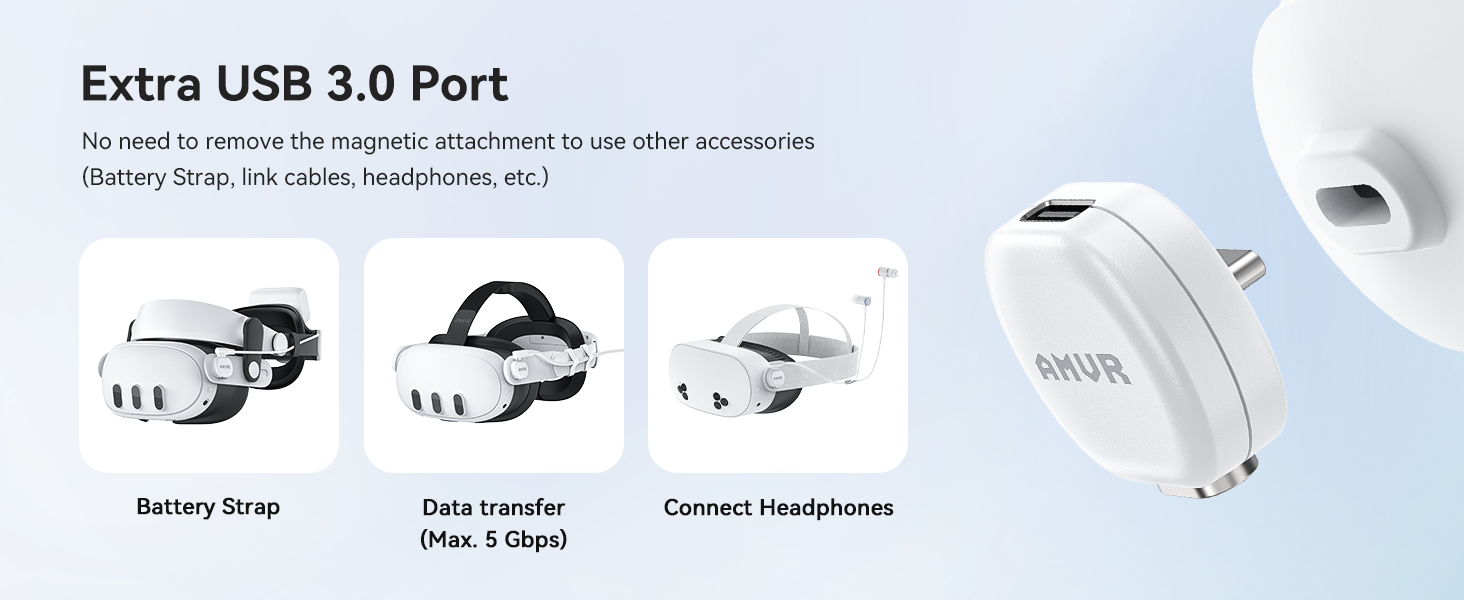 - Free Up Your USB-C Port – Unlock a high-speed USB 3.0 female port (5Gbps) without removing the adapter. Connect your essential gear(link cable, battery strap, etc.) and shield your headset's valuable USB-C port from damage
