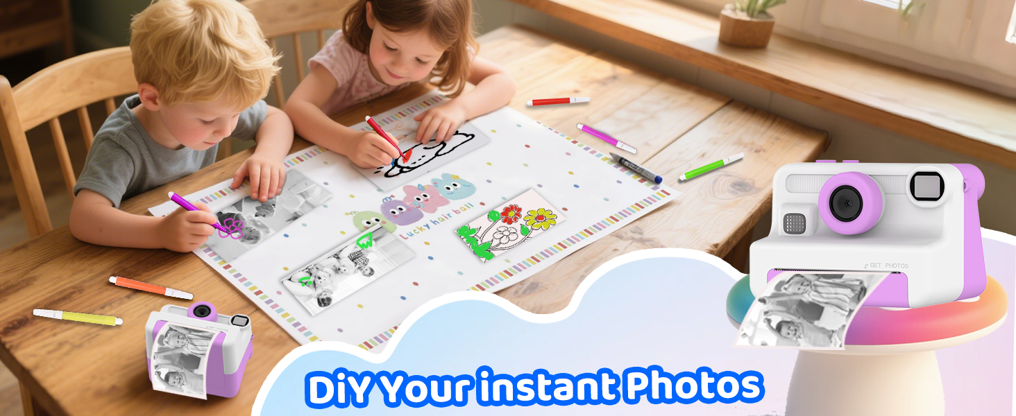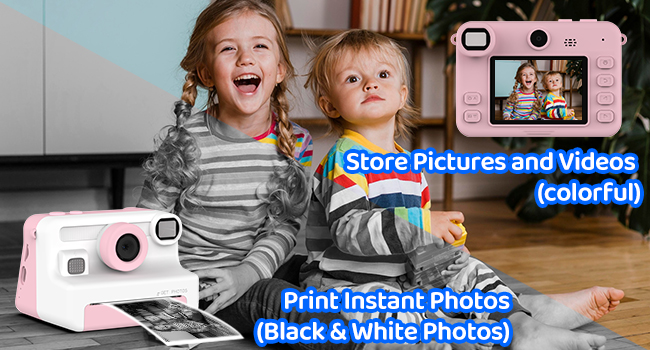 - Instant Print Camera with Accessories – This kids’ instant camera comes with everything children need to start creating right away: 3 rolls of printing paper, 6 colorful pens, and 3 sheets of stickers. Kids can instantly print black-and-white photos, then decorate and color them for hours of creative fun.