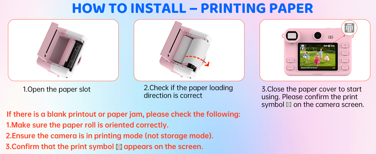 With 3 rolls of printing paper, 6 colorful pens, 3 sheets of stickers so kids can print, decorate, design unique keepsakes.