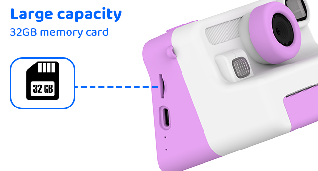 It comes with a type-c cable that can not only easily charge kid camera but also can directly transfer photos and videos to your computer.