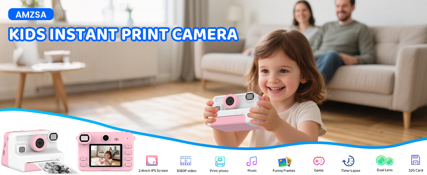AMZSA Now Kids Camera Instant Print, 1080P Video, Children
