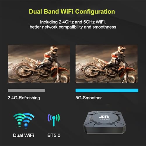 - 【4K Ultra HD with H.265 Decoding】 Watch in stunning 4K Ultra HD resolution with efficient H.265 decoding. Android 14.0 TV Box supports multiple video/audio formats for YouTube, Netfilex, movies, and more.