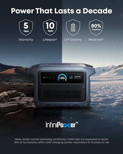 Anker SOLIX C1000 Gen 2 Portable Power Station with 100W Solar Panel, 2,000W (Peak 3,000W) Solar Generator, Full Charge in 49 Min, 1,024Wh LiFePO4 Battery for Home Backup, Power Outages, and Camping