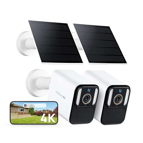 Anona Aurora 4K Solar Security Cameras Wireless Outdoor, Forever Power with Solar Panel, 8MP Color Night Vision, 24/7 AOV Recording, No Monthly Fees, AI Detection, Easy Setup, 2.4 G WiFi, IP67, 2 Pack