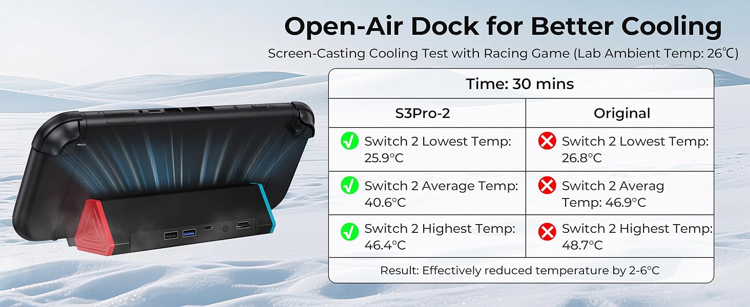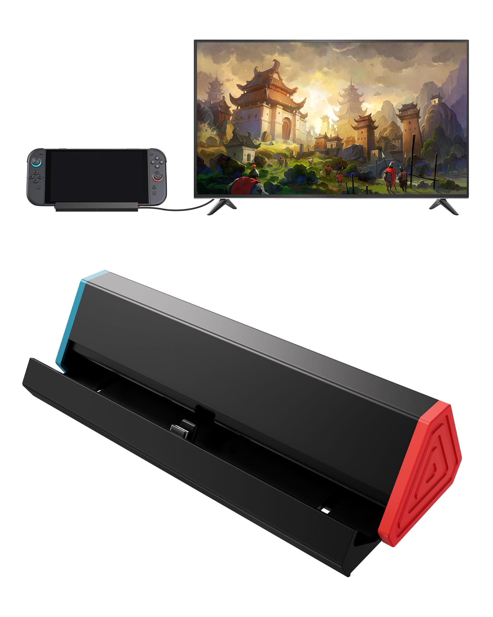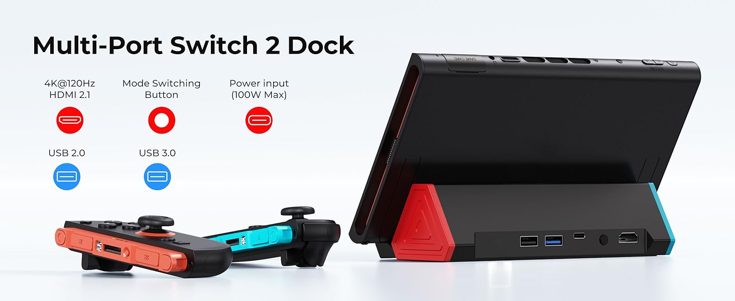 - Ultra-Compact and Portable: This Switch 2 dock, featuring a classic red and blue color scheme, measures only 16.85 cm*5.17 cm*4.22 cm, making it more portable and lightweight than the official dock. Its functions are identical to the official dock, making it a perfect replacement for the official Switch 2 dock