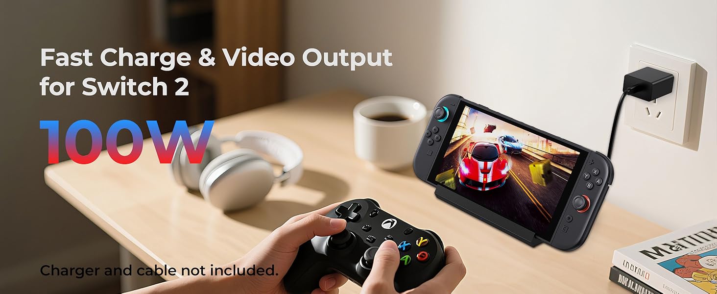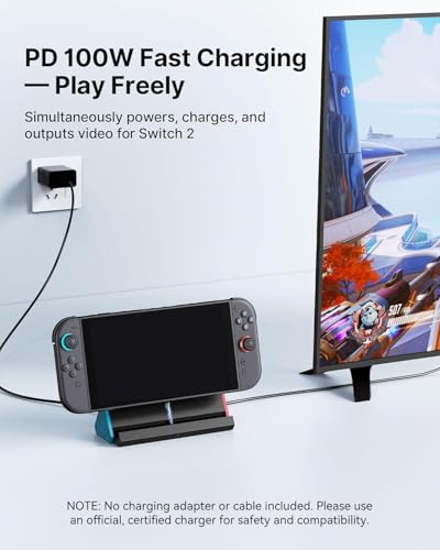 - Charge While Playing: The Switch 2 dock supports up to 100W PD fast charging, allows the Switch 2 system to be charging while in TV or tabletop mode. Built in smart original chip, having Short-circuit Protection, Over Power Protection, Recovery Protection and Overheating Protection. (1.The max charging power of Switch 2 is 45W. 2.Do not wear case when using this dock)