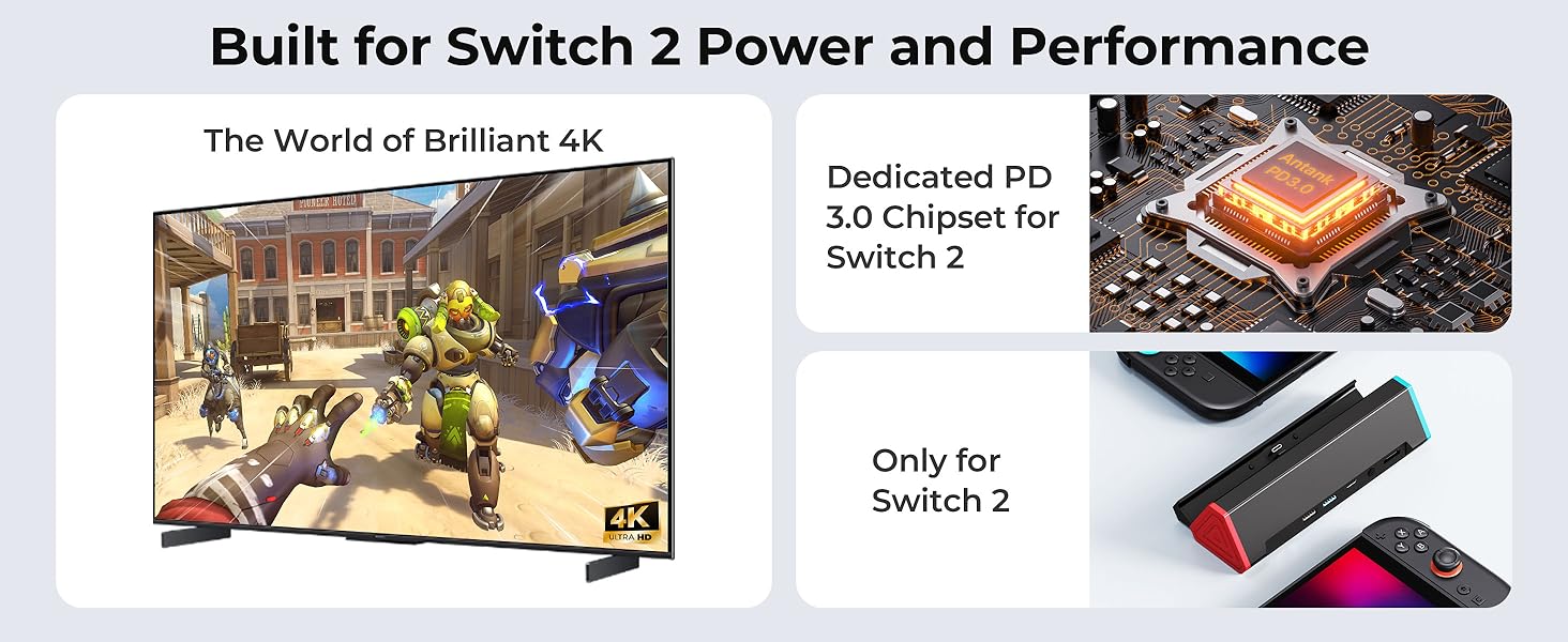 - Compatible with Nintendo Switch 2 ONLY: Antank TV dock only works with Nintendo Switch 2 (2025). The Switch 2 docking station is not work with Switch 1/Oled/Lite. (NOTE: only docking station included, no AC Adapter. Please use official original Switch AC Adapter)