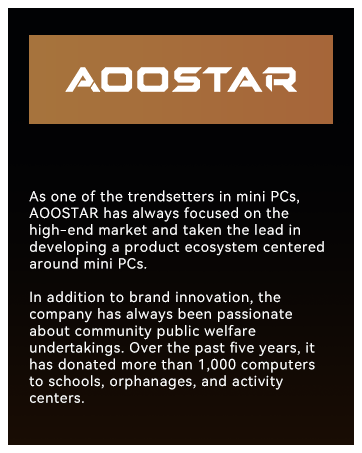 【AOOSTAR MACO Mini PC: The All-Rounder with Ryzen 7 H255】Powered by a Ryzen 7 H255 CPU (8 cores, 16 threads, up to 4.9 GHz, 16 MB L3 cache) and Radeon 780M graphics (RDNA 3 architecture), the AOOSTAR MACO mini PC delivers versatile performance for everyday multitasking and entertainment.It handles light-to-moderate photo and video editing, plays back 4K and 8K content smoothly, and runs dozens of browser tabs, office applications, and communication tools simultaneously without slowdowns. For gaming, it easily runs popular titles like League of Legends, CS:GO 2, Dota 2, and Valorant.(The barebone system includes a free Win 11 Pro license key.)