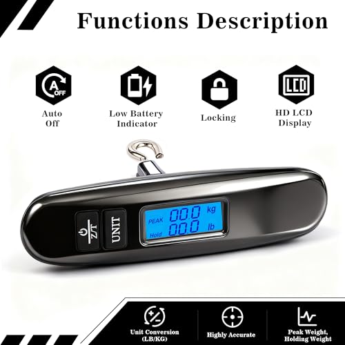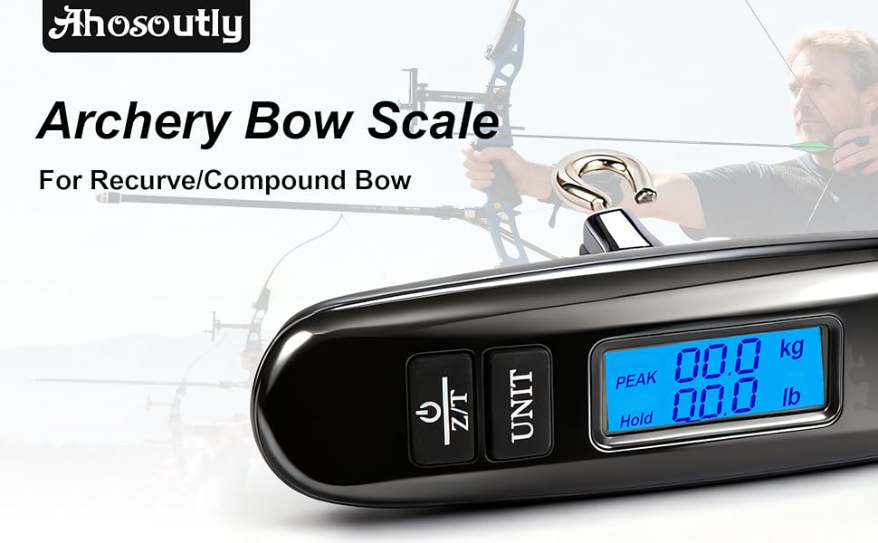 Digital Bow Scale: This bow scale features both PEAK and HOLD functions, allowing for quick measurement of draw weight for recurve bows and compound bows. It can swiftly switch between two display units, "kg" and "lb," for easy reading. It is perfectly suited for archery and hunting.