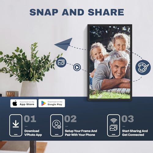 - 32 GB large storage space: you can share videos and photos safely and privately via VPhoto app and email from anywhere via WiFi on your frame, friends and family can enjoy your beautiful moments on the digital frame. The Smart Frame has 64GB of built-in memory to store up to 80,000 photos, and you can import and export images or videos. Supports Mirco SD card extended storage (up to 64GB, not included), provides massive storage capacity, you can save your fun times to your heart's content.