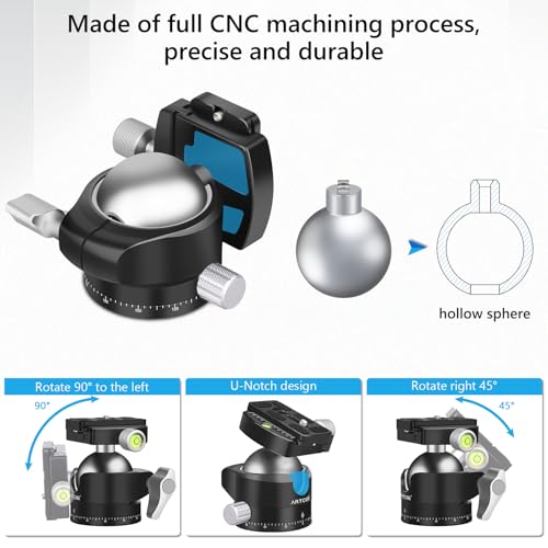 ARTCISE Low Profile Camera Tripod Ball Head,56mm Metal
