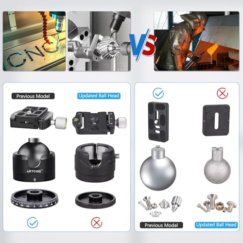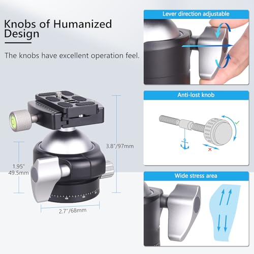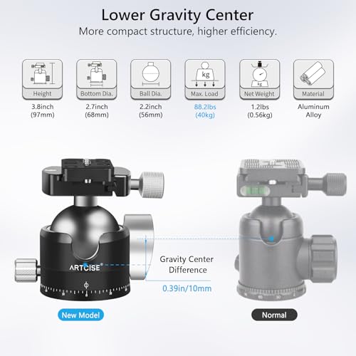 ARTCISE Low Profile Camera Tripod Ball Head,56mm Metal Panorama Ball Head Compatible with Arca 1/4″ Quick Release Plate for Tripod Monopod Slider DSLR Camera Camcorder, Load Capacity: 88lb/40kg