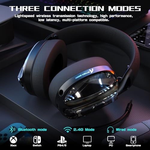 ATTACK SHARK L60 Wireless Gaming Headset, 2.4G/BT/3.5mm Wired Ultra-light Headphone with 40mm Drivers, Over Ear, Noise Cancelling Detachable Mics, 3D Surround Sound for PC/Mac/PS/XBOX, Black