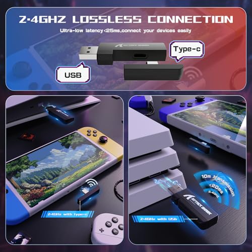 TRIPLE CONNECTIVITY, MULTI-PLATFROM COMPATIBILITY: The ATTACK SHARK L60 gaming headset seamlessly switches between 2.4G wireless, Bluetooth, and 3.5mm wired modes. A dual-port 2-in-1 receiver (USB-A and Type-C) ensures compatibility with PCs, PS, Xbox, and mobile devices. NOTE: A quick double-click of the power button switches between Bluetooth and 2.4G modes.