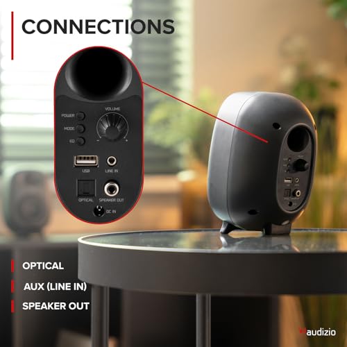 ” data-position=”triggerHorizontal” />Input ConnectionsBluetooth 5.0, optical, and 3.5mm AUX mean direct pairing with PC, TV, or phone. Stream wirelessly, hook up a laptop, or use the optical port for TV audio.