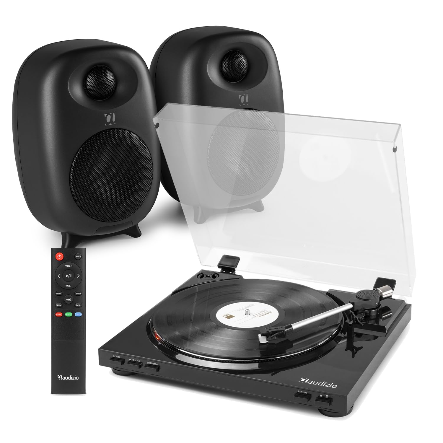Audizio RP310 Vinyl Record Player with Auto Return & MP3 Recording, Active Bluetooth Bookshelf Speakers, Optical AUX USB, Hi-Fi Stereo System for Home Audio, Modern Turntable with Speakers