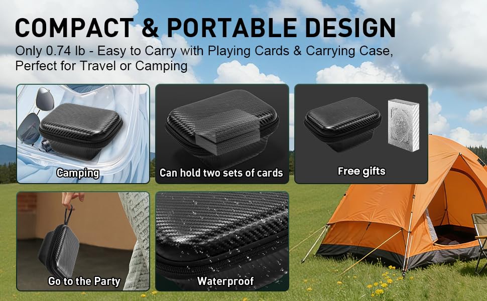 【Includes Waterproof Carrying Bag & Poker】More than just an auto card shuffler. Each set includes a waterproof carrying bag and a poker deck—no extra purchases needed. Lightweight and durable ABS design makes this UNO card shuffler machine easy to carry for family trips, camping, parties, and game nights.
