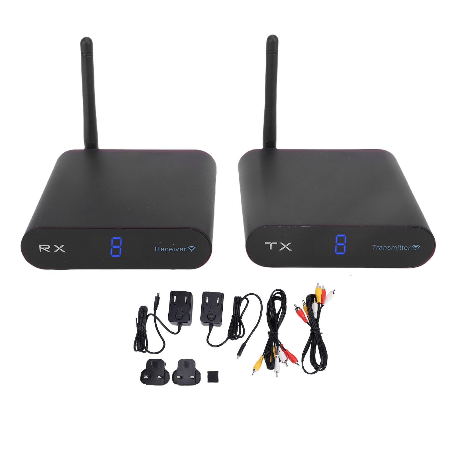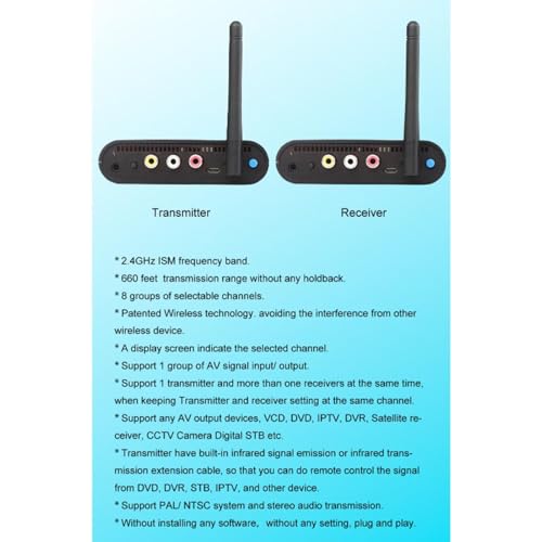 AV Transmitter Receiver, Video Audio Transmitter and Receiver 2.4GHz 8 Channel Sound Video Sender Wireless AV Sender for Streaming Cable, Satellite, DVD Camera TV
