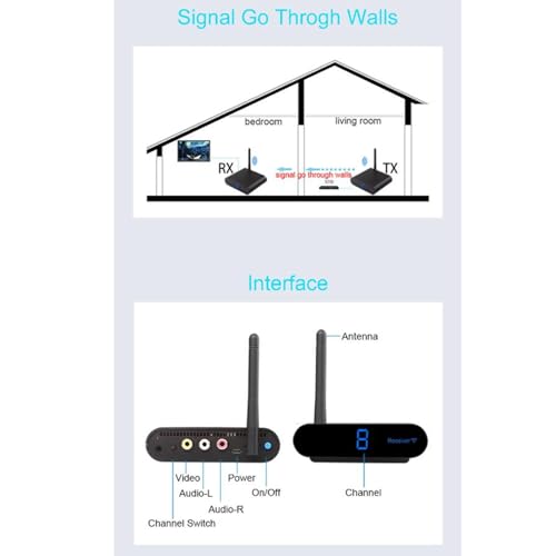 2、INTUITIVE AND CONVENIENT: The wireless AV transmitter receiver adopts a digital screen to display channels. Channel selection is convenient and intuitive, and the operating is simple