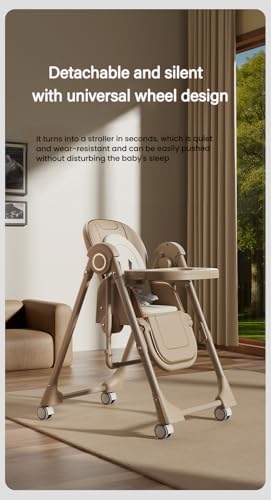 - 【360° Rotating Wheels with Brake System & Thickened steel frame】 Equipped with 360° rotating swivel wheels, this high chair glides smoothly through tight spaces. The brake system allows you to lock the wheels securely in place with a simple press. The soft rubber casters are gentle on all floor surfaces. Reinforced with a thickened steel frame and a stable anti-tip base, it maintains excellent stability even on slippery hardwood floors, preventing wobbling or tipping over during use.