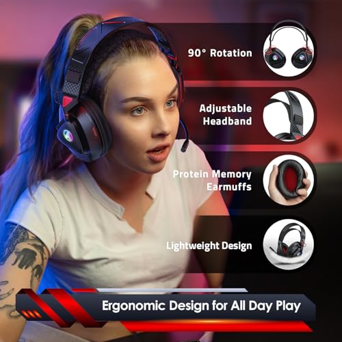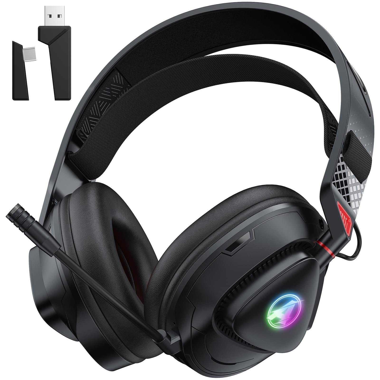 Ergonomic Design & Adustable Headband: The wireless gaming headset feature a ergonomic design and adjustable headband offer a perfect fit, reducing fatigue and ensuring you stay comfortable and focused.