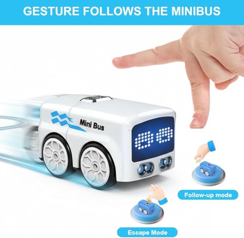 Azazaza Magic Mini Rc Bus, Remote Control Car with LED Expression Lights & Automatic Follow Mode, Automatic Avoidance Patrol Line Driving, Toy Bus for Toddlers Boys Girls 6 7 8 9 (White)