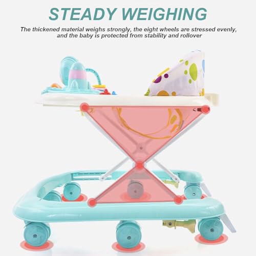 - Stable & Durable:Built with thickened, durable materials for strong load-bearing capacity, this baby walker ensures safety with eight wheels that distribute weight evenly. It reliably protects babies from tipping over