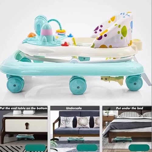 Specification: Color: Mint Blue Suitable for ages 6:-18 months Net weight: 2.5KG Load bearing: 20 kg Height adjustment: 5 levels, 15CM/36CM/38CM/40CM/42CM Package includes: 1 foldable baby walker Note: All marked dimensions are maximum dimensions, which may vary slightly due to different measurement methods and tools, and are for reference only. Note:It is recommended that babies use a baby walker after they can stand to prevent them from slipping down