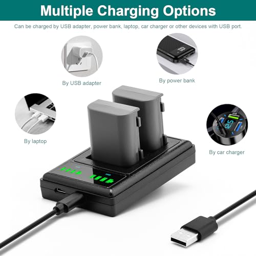 LED DUAL USB CHARGER WITH TYPE C PORT: Input: Input: 5V /2A – 10W Output: 8.4V 0.6A – 5W; With LED indicator to show each battery status; With a micro USB cable for easy charging; Charge two batteries simultaneously and independently,With LED indicator to show each battery status; With a micro USB cable for easy charging;