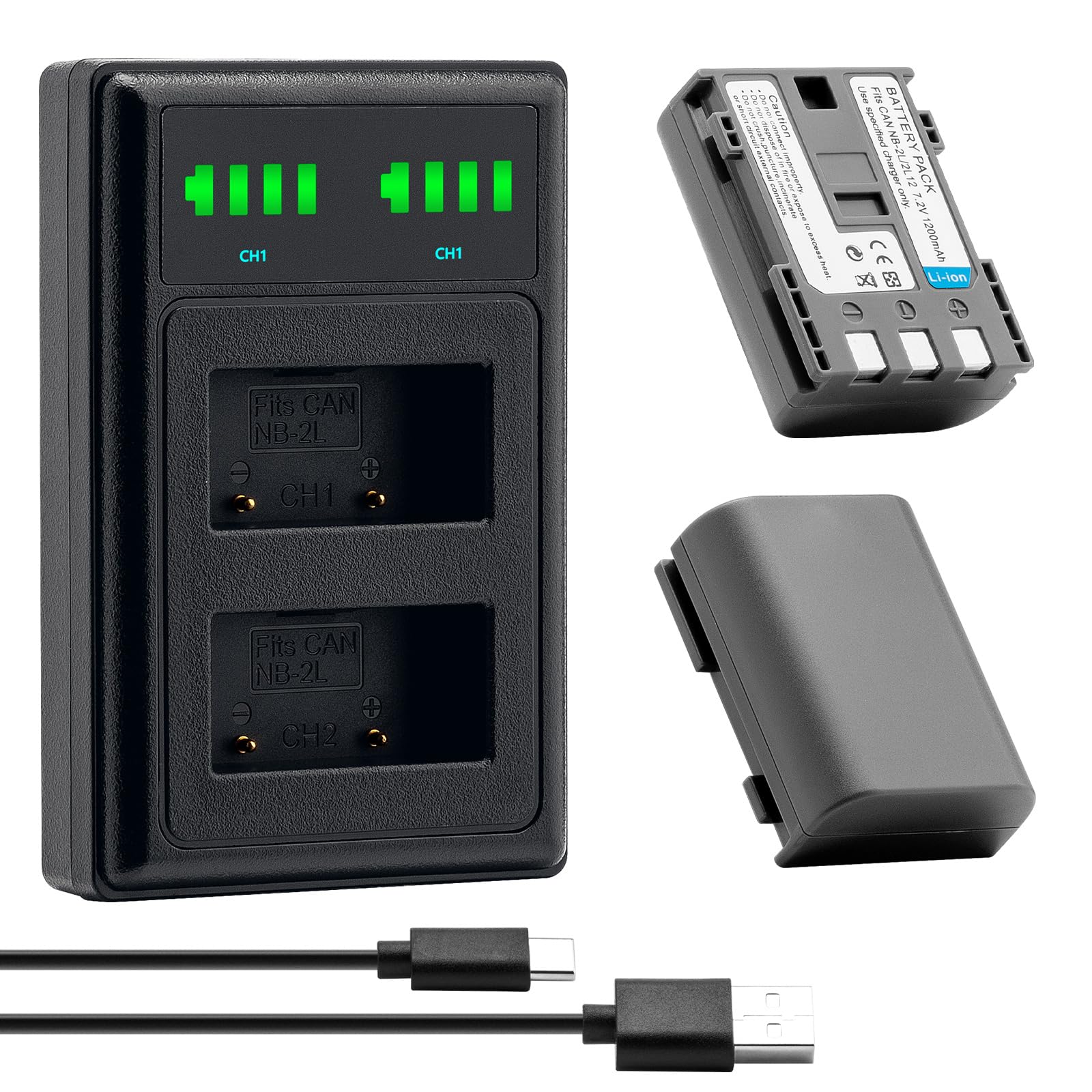 PACKAGE INCLUDES: 2 x NB-2L batteries + dual USB charger + micro cable + manual 30days money back; 1 years waranty.