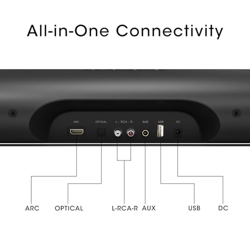 - 7-in-1 Extensive Connectivity: HDMI ARC, Optical, Bluetooth 5.0 & More Enjoy unparalleled flexibility with every connection option you need. Simply plug and play via HDMI ARC (for superior audio syncing and single remote control with your TV), Optical, RCA, AUX, or USB. Stream from any device with stable Bluetooth making it the ultimate all-in-one audio solution.