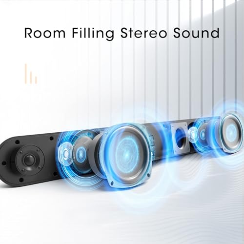 - Immersive Powerful Sound & Expensive 28 Inch Design Experience room-filling, crystal-clear audio with a powerful output. The generous 28inch soundbar design not only looks sleek and modern under your TV but also houses larger drivers for a wider soundstage and deeper bass, significantly enhancing movies, music, and games beyond your TV's built-in speakers.